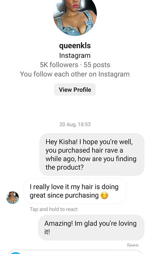 “Oh my days! I am finally seeing growth along my hair line. I use this every evening and it’s doubling up as self care. I would never be without this product in my life”